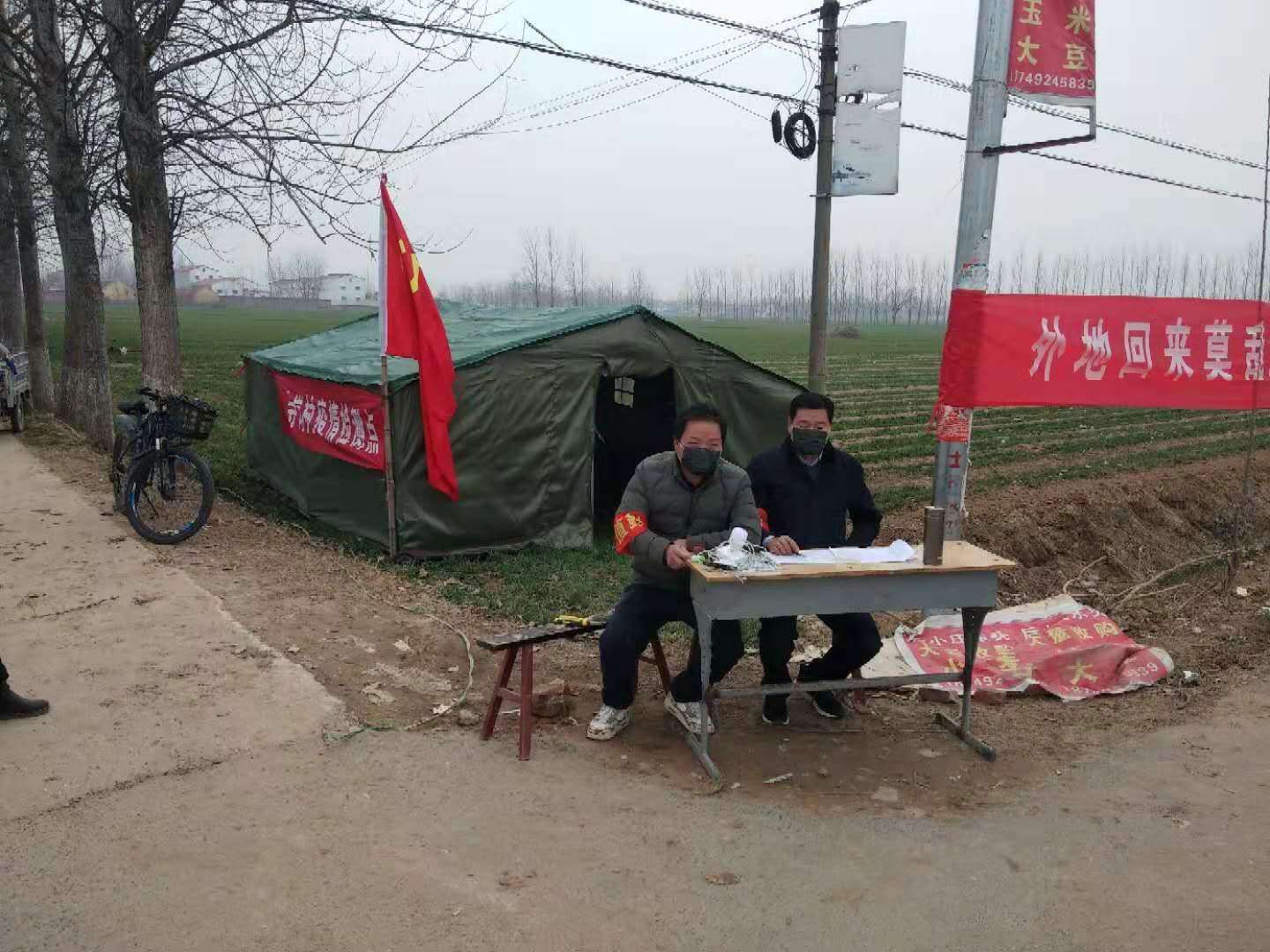 面對疫情的迅猛擴散,寧可十防九空,不可失防萬一。針對村內外出務工返鄉村民較多,車輛人員流動頻繁,管理難度大的情況,紀占東多方協調,發動村內黨員,成立了黨員志愿服務隊、設立了黨員先鋒崗,在村內主要交通路口設立疫情監測站點,保證每一個站點至少有2名黨員參與,24小時輪班值守,切實為群眾的安全設立了一道牢固的防線,筑起一道堅實的“保護墻”。