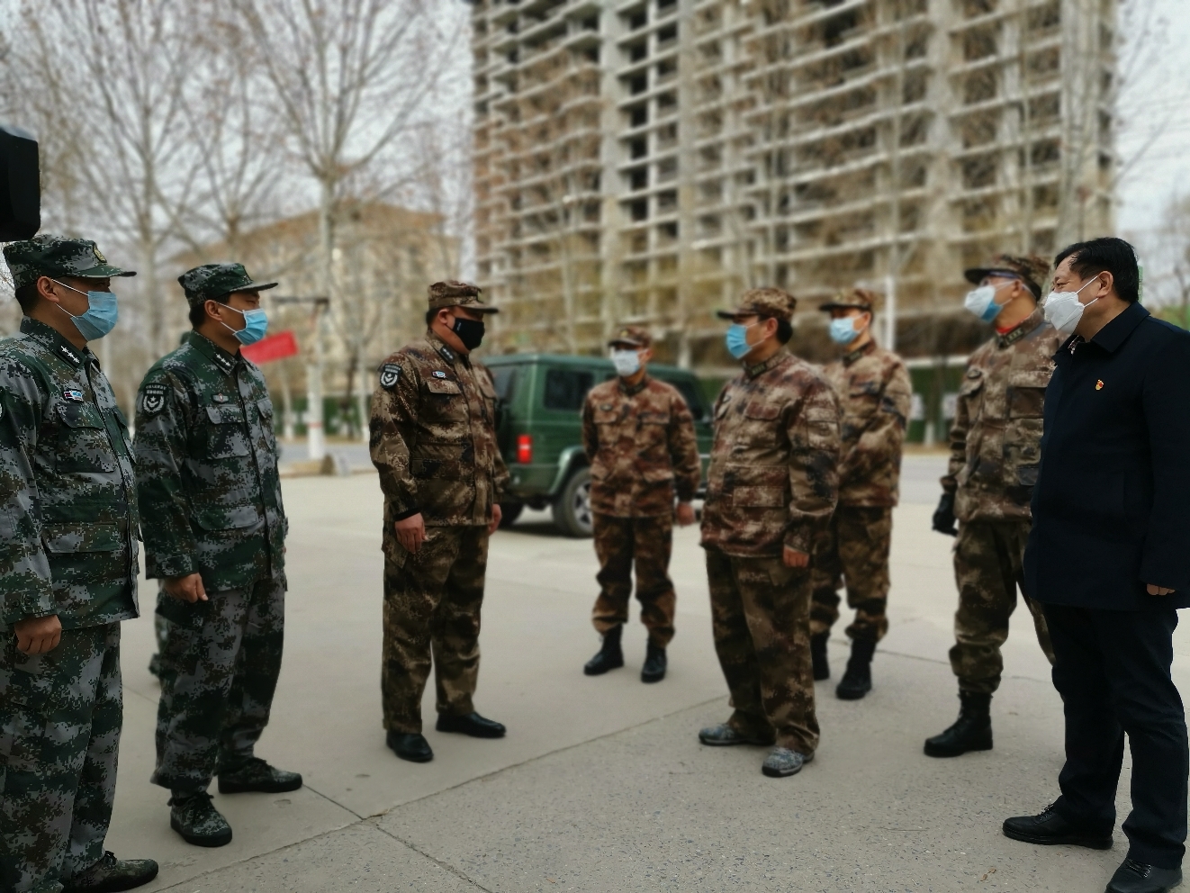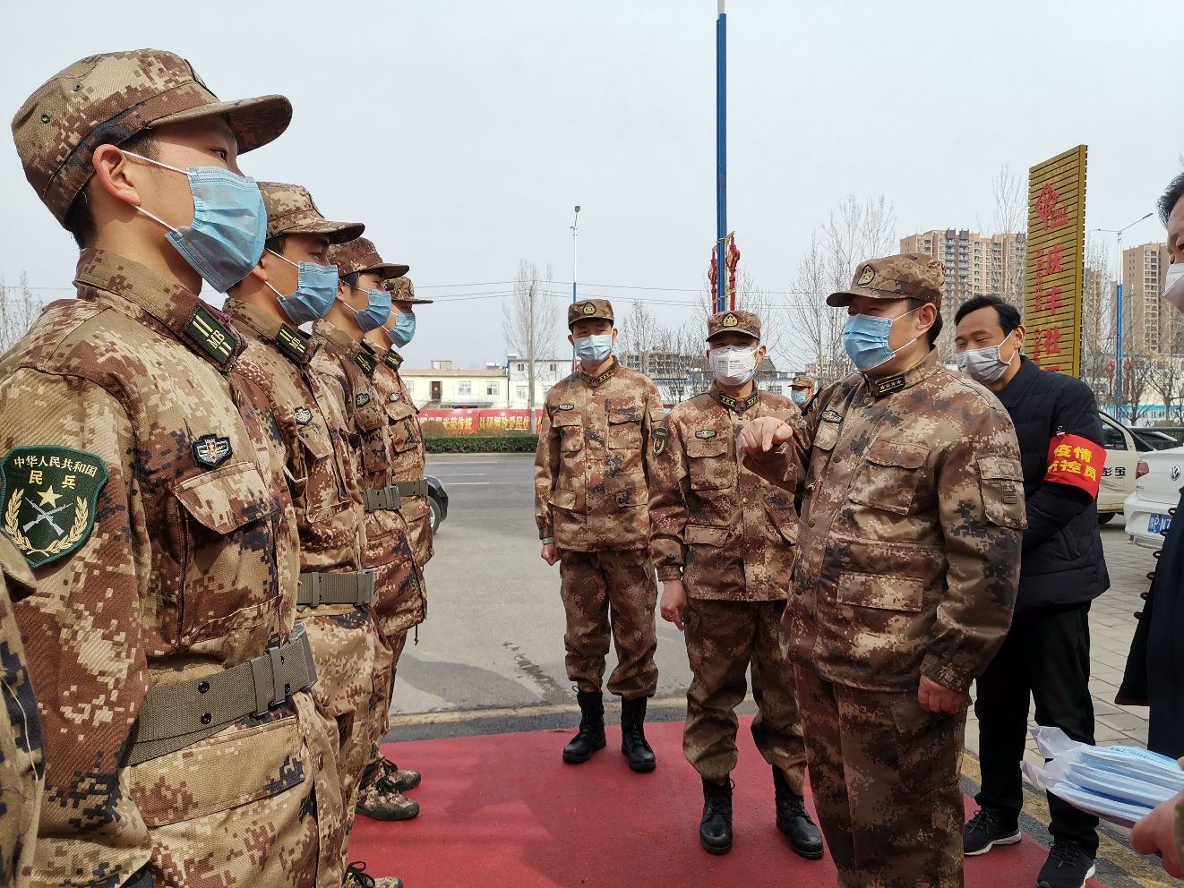 2月19日上午,周口軍分區司令員王善沖走社區、到醫院、進企業,深入到川匯區檢查指導防疫防控工作。