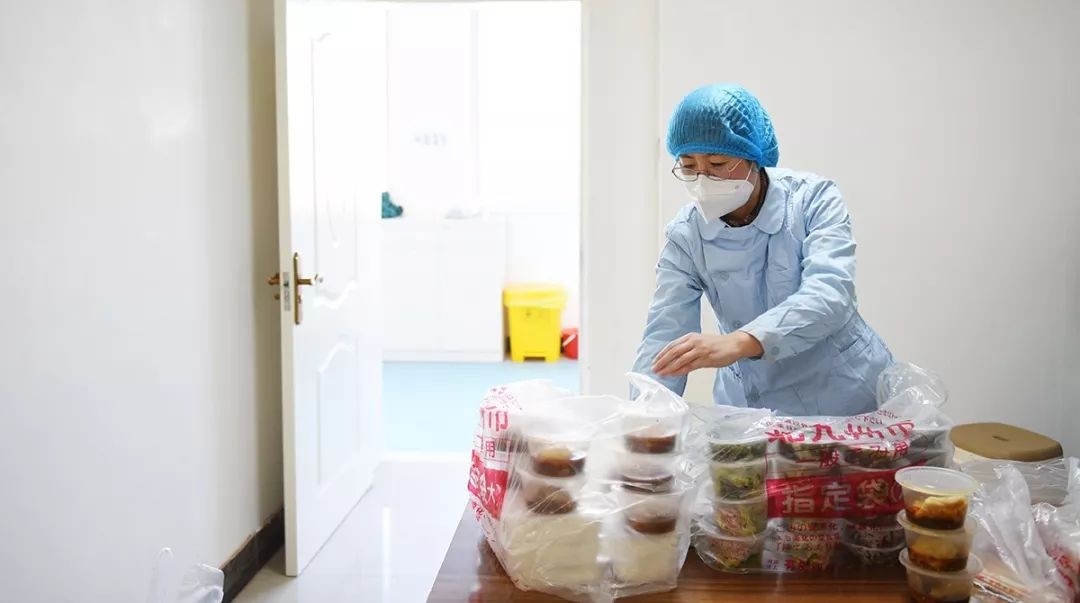 又到了打飯的時(shí)間,鄲城縣人民醫(yī)院新冠肺炎定點(diǎn)治療隔離病區(qū)護(hù)士長(zhǎng)莊坤掰著手指一個(gè)一個(gè)向餐廳介紹病人的情況,用“了如指掌”來(lái)形容最恰當(dāng)不過(guò)。一邊說(shuō)話,她一邊熟練地將幾筐飯菜分類打包,每一份都用食品袋包好,哪是確診病人的,哪是留觀病人的,每一份上面都寫(xiě)上名字,再由護(hù)士分別送去。