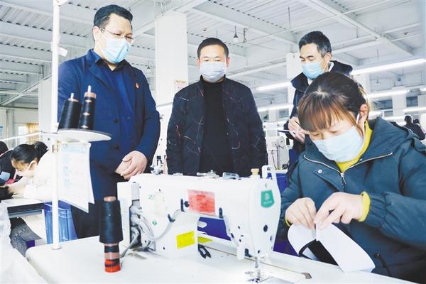 為保障抗擊疫情、企業(yè)復(fù)工復(fù)產(chǎn)協(xié)調(diào)推進,連日來,鄲城縣紀委監(jiān)委組織紀檢監(jiān)察干部深入復(fù)工復(fù)產(chǎn)企業(yè),了解企業(yè)復(fù)工審批、疫情防控措施落實等情況,督促有關(guān)部門及時解決企業(yè)面臨的難題,切實發(fā)揮監(jiān)督保障作用,全力護航企業(yè)復(fù)工復(fù)產(chǎn)。圖為昨日,該縣紀檢監(jiān)察干部在河南旭升帽業(yè)有限公司生產(chǎn)車間了解復(fù)工復(fù)產(chǎn)情況。