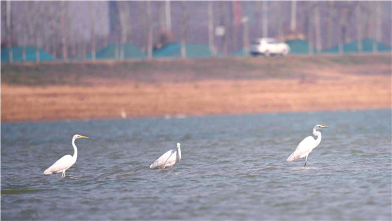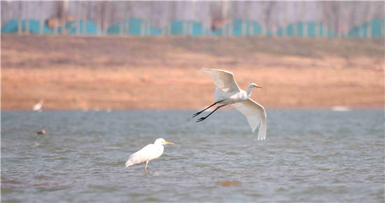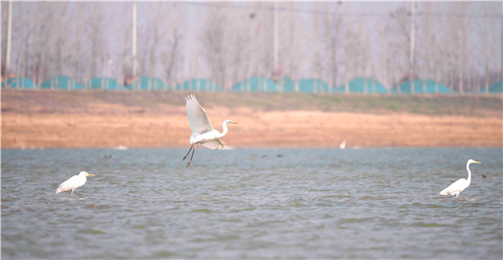 3月5日是驚蟄,俗語有“春雷驚百蟲”,從這一天開始,陽氣上升、氣溫回暖、春雷乍動、雨水增多,萬物生機盎然。驚蟄,自古以來是我國春耕開始的節令,冬眠的動物蘇醒,動物們也開始活躍起來。圖為3月4日我市引黃調蓄工程的兩千多畝湖泊里,水鳥翔集,喜歡水清的白鷺也出現在這里。記者 梁照曾 攝