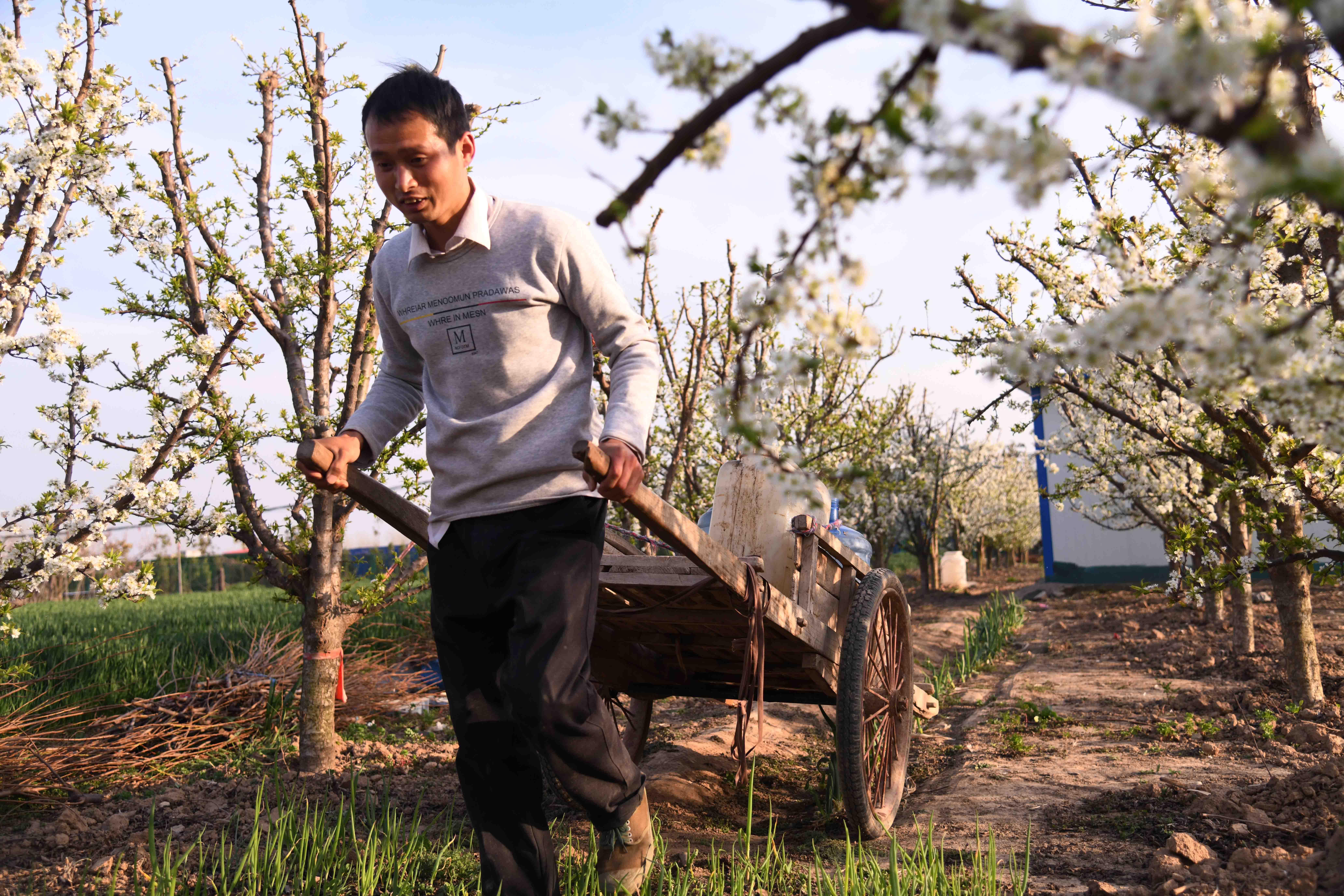 記者在一家果農的果園里看到,果園在春陽下,李子花滿園濃放,滿樹花朵潔白如玉,芳香四溢,宛如置身人間仙境。果農正忙著為果樹澆水,侍弄新栽的果苗。何莊村果園有三四百畝,種植有桃樹、蘋果樹、梨樹、李子樹、柿樹等,是附近有名的果樹種植村,成為村里的重要副業,每年夏秋季節,這里瓜果飄香,吸引很多城里人和附近村民前來購買。