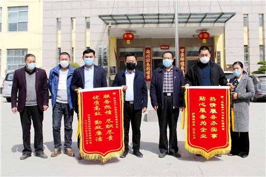 “熱情服務辦實事、貼心服務為企業”“服務熱情盡職盡責、優質高效勤政廉潔”3月17日,河南護理佳紙業有限公司和河南梵蒂詩紡織科技有限公司兩家企業的負責人,來到鹿邑縣產業集聚區管委會,送上了錦旗,對管委會服務企業發展表示感謝。