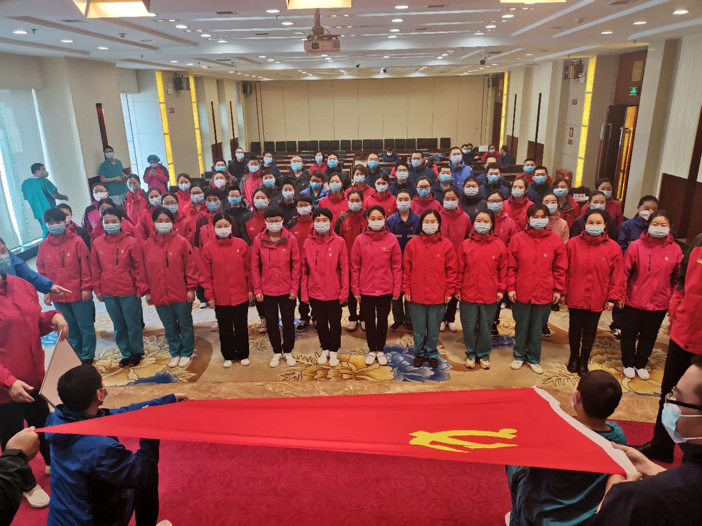 周口援鄂醫療隊隊長、臨時黨支部書記閆登峰表示,黨建是做好一切工作的根本保障,周口援鄂醫療隊自成立之初就確定了黨管隊伍的原則,一到武漢就召開了全體共產黨員大會,并成立臨時黨支部,引導群眾隊員積極向黨組織靠攏。目前,醫療隊已發展兩批預備黨員,黨員人數達到54名,已成為一個特別能戰斗特別能吃苦特別能奉獻的戰斗堡壘,“臨時黨支部將帶領黨員醫護人員,堅定理想信念,堅守醫護人員初心,與身邊戰友一起,與武漢人民一起,遏制疫情蔓延,為保衛人民生命安全和身體健康做出積極貢獻”。