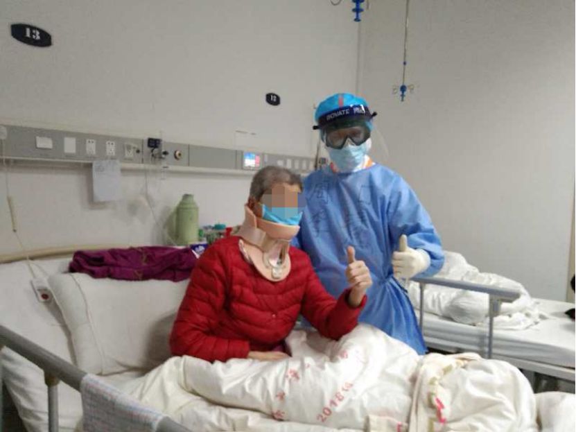 進入醫院之后,發現病患并沒有想象的那么可怕,而且很熱情,尤其在一系列的護理操作及心情疏導之后,很多病患為周口赴鄂醫療隊豎起了大拇指,說河南人真棒,這個時刻就是對孫慧慧最大的鼓勵。