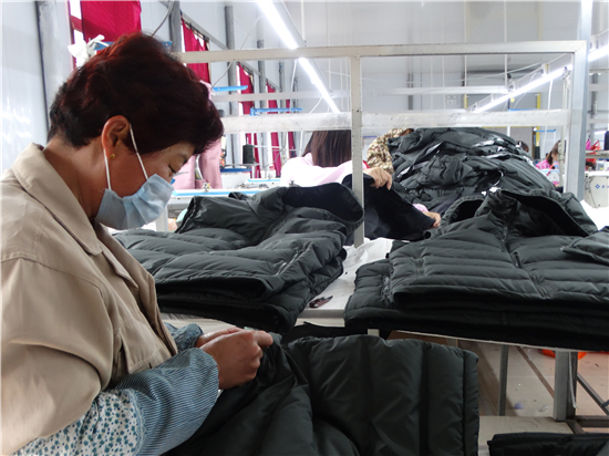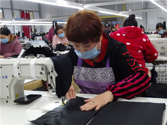 疫情不能放松,復工復產也要穩(wěn)妥推進。連日來,沈丘縣婦聯(lián)鼓勵引導和組織廣大婦女群眾科學安全有序助力企業(yè)、農業(yè)合作社、扶貧車間等復工復產,確保戰(zhàn)"疫"扶貧兩不誤,為統(tǒng)籌推進防疫戰(zhàn)和脫貧攻堅戰(zhàn)貢獻巾幗力量。圖為沈丘縣周營鎮(zhèn)馬營村慧恩服飾有限公司來料加工扶貧車間內,女工們正在生產線上加工訂單服裝。
