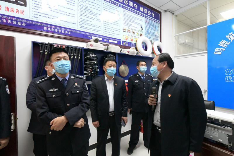 4月17日下午,鹿邑縣委副書記、政法委書記許四軍帶隊先后走進鳴鹿第一社區網格化管理點、賈灘鎮大宋警務室、楊湖口鎮李油坊警務室、邱集鄉大白警務室、高集鄉老王樓警務工作站、第一治安卡點、高集派出所,實地察看轄區社會治安防控體系建設暨派出所基層基礎工作。縣政府副縣長,縣公安局局長任金瑞,縣公安局黨委班子成員,各相關科室負責人,各鄉鎮分管政法的副書記、派出所所長等參加觀摩。