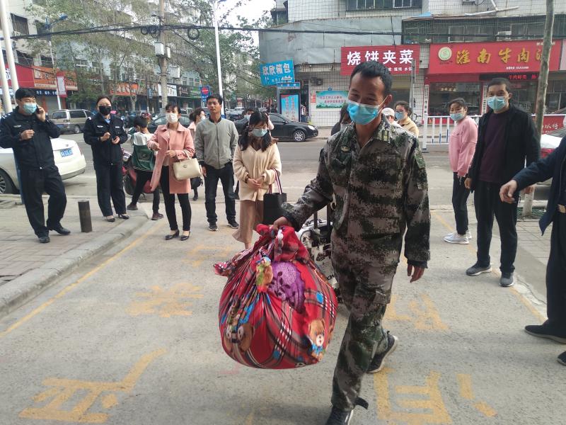 行動中,基干民兵按照應急預案要求,全部提前到崗到位,在學校大門前及周邊路口巡邏執勤,指揮疏導車輛有序通行,避免交通堵塞,造成人員聚焦;積極協助學校進行體溫檢測、物品消毒、人員登記等工作;引導學校門口家長、學生不聚集、不扎堆,保障師生安全有序入校。為避免人群過度密集,學生家長一律禁止進入校園,而學生開學時攜帶的行李物品較多,基干民兵們主動當起了“搬運工”,幫助學生們扛運大包小包的書籍、被褥和行李,熱情的服務受到很多學生的點贊。