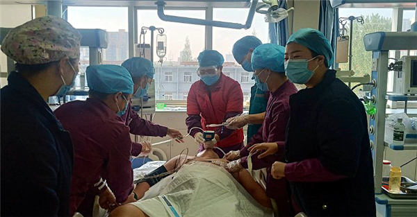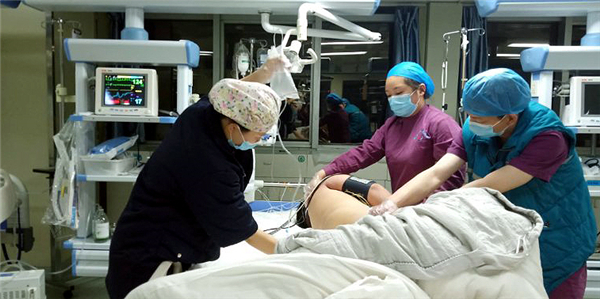 急救迅速展開。6時13分,急救車到達(dá)醫(yī)院急救中心。救援現(xiàn)場,有著豐富急救經(jīng)驗的董建洲醫(yī)生判斷患者為重度有機(jī)磷農(nóng)藥中毒且伴有呼吸衰竭癥狀。經(jīng)過一個多小時搶救,患者血壓出現(xiàn)平穩(wěn),但呼吸仍然困難,隨時有生命危險。