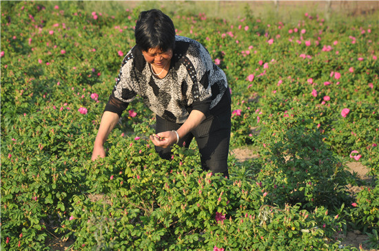 2015年,在昆明、鄭州等地從事花卉經營銷售十多年,積累了一定經驗和資本的劉軍停返鄉流轉土地種植藥用玫瑰400多畝,目前已到采摘期。這些玫瑰經分揀、烘干等初加工后銷售到南方某醫藥公司進行深加工,花農每畝可收入7000元左右。