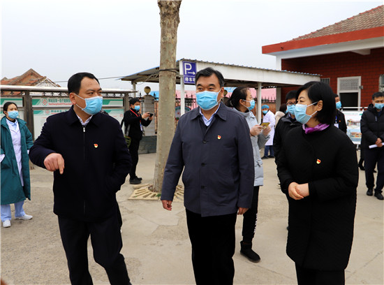 (2020年2月26日,市委書記劉繼標在鄲城縣虎崗鄉村衛生室聽取羅文閣、李全林關于醫共體建設工作匯報。)
