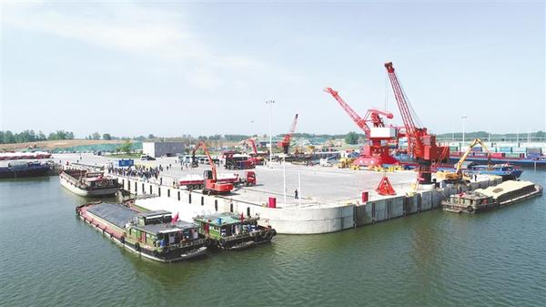 復工復產以來,周口中心港碼頭加大馬力,全速運轉,為地方經濟建設發展提供強有力的運輸保障。圖為周口中心港碼頭作業現場一派繁忙景象。