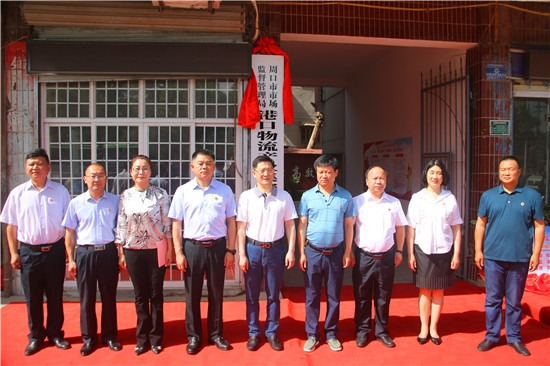 在新聞媒體和分局全體干部職工的見證下,孫紅偉、時乃立、干在慎、李素芹為周口市市場監督管理局港區分局揭牌。