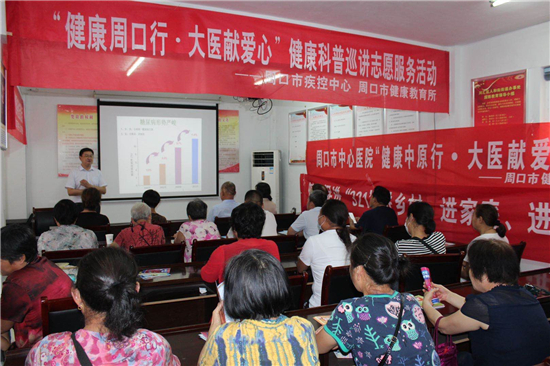 為普及健康素養基本知識與技能,倡導健康文明的生活方式,提高百姓的健康意識和自我保健能力,近日,由市、區衛健委,周口市健康教育所、周口市中心醫院、川匯區健康教育所共同承辦的“健康中原行 大醫獻愛心”健康教育志愿服務隊走進川匯區人和街道辦事處慶豐社區開展健康教育活動。