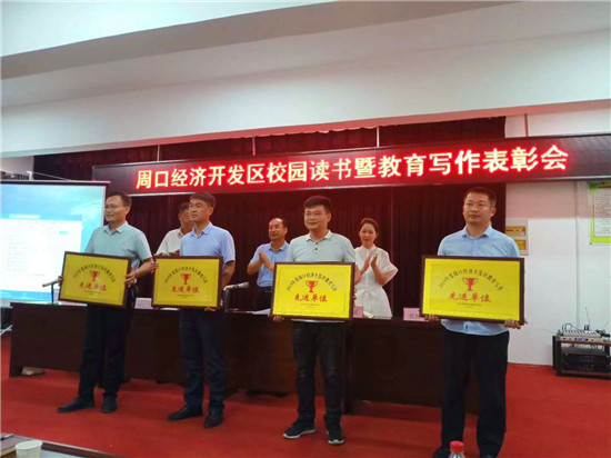7月3日,周口經濟開發區舉行了校園讀書暨教育寫作表彰會。會議表彰了開發區實驗學校等8個“書香校園”,開來路小學二年級等18個“書香班級”、祁倩倩等30名“教師閱讀之星”,授予開發區第一小學等4個學校開發區“教育寫作先進單位”、李雅等11名教師為開發區教育系統“十佳作者”、張艷春等17人為開發區教育系統“優秀作者”稱號。