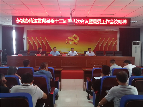 商水縣委十三屆八次全會暨縣委工作會議召開后,東城辦迅速組織全體干部學習貫徹,結合下半年工作制定措施,積極動員引導全體干部職工,緊盯脫貧攻堅,強化工作舉措,壓實各級責任,全力沖刺年度目標。