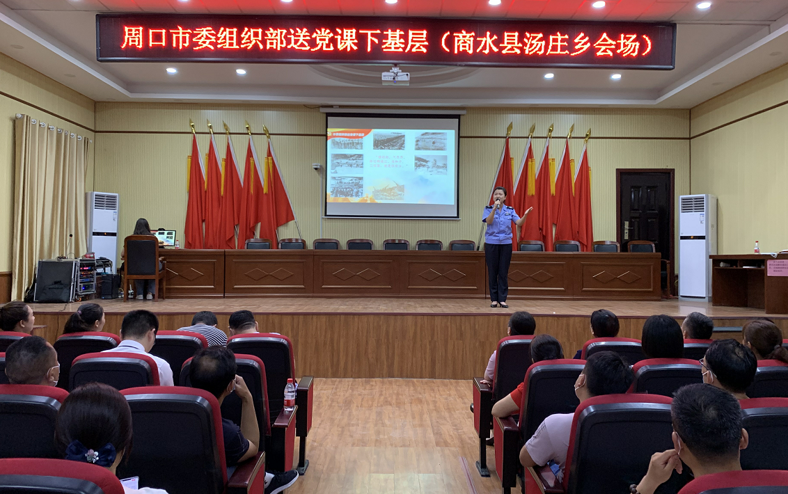 8月11日,市委組織部“送黨課下基層”活動走進商水縣湯莊鄉,為當地100多名黨員干部送來一堂高質量的黨課。