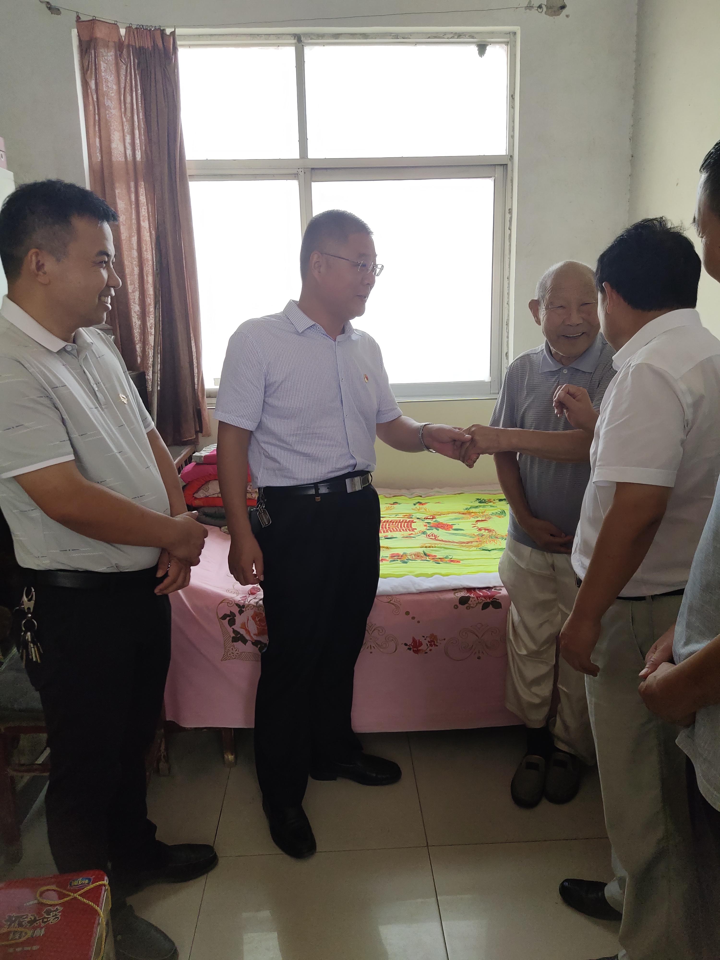 9月1日上午,扶溝縣委老干部局局長鄒振超、包屯鎮(zhèn)黨委書記張曄、鎮(zhèn)長董慶軍等領(lǐng)導(dǎo)同志,到包屯鎮(zhèn)離休干部、抗日老戰(zhàn)士袁立志家中走訪慰問,并送去慰問品和慰問金。