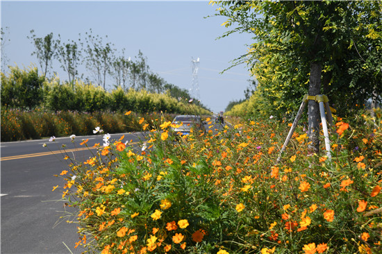 9月2日,富裕起來的農民駕車行駛在商水縣高標準農田示范區內兩側開滿鮮花的田間道路上。秋天到來,5萬畝示范區內縱橫交叉的近20公里田間道路兩側混種的格桑花、波斯菊、百日草等在燦爛的陽光下爭奇斗艷,與長勢喜人、豐收在望的秋作物相映成輝,引來許多市民前來觀賞。記者付永奇攝