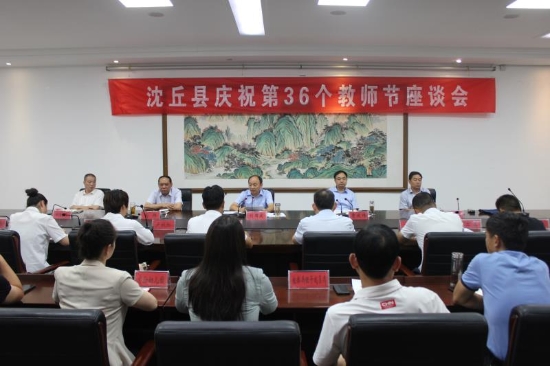 9月8日,沈丘縣召開(kāi)第36個(gè)教師節(jié)座談會(huì)。縣領(lǐng)導(dǎo)劉國(guó)慶、賈慶偉、馬偉、閆開(kāi)興、柳致遠(yuǎn)出席座談會(huì),相關(guān)部門(mén)負(fù)責(zé)人和各鄉(xiāng)鎮(zhèn)中心校校長(zhǎng)、局管學(xué)校校長(zhǎng)、部分教師代表參加了座談會(huì)。