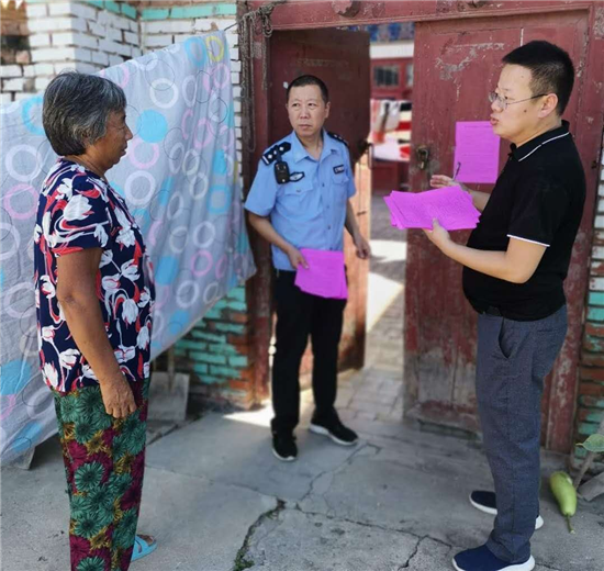深入開展大走訪活動。按照縣委統一部署,開展“千名干警”進萬家活動。實行鎮班子成員包工作區、政法干警包村制度,組織“一村一干警、一村一輔警”、包村干部和扶貧駐村工作隊同走訪,做到村不漏戶、戶不漏人,集中7-10天時間開展入戶大走訪活動,發放平安建設工作宣傳明白紙,填寫平安建設調查問卷,搜集社情民意。通過開展大走訪、大溝通、大排查、大化解行動,解決群眾中的小糾紛、小隱患、小案件、小問題、小需求,切實提高群眾的安全感和滿意度。