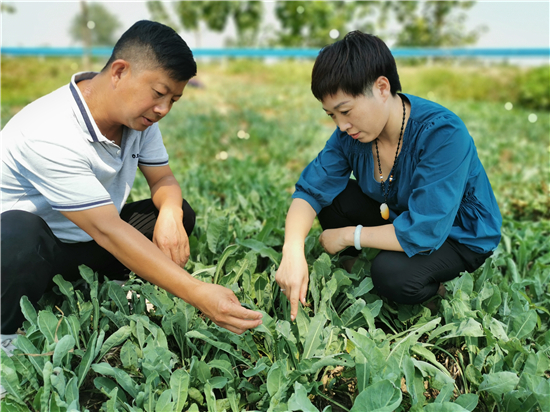 圖為村干部查看板藍根長勢