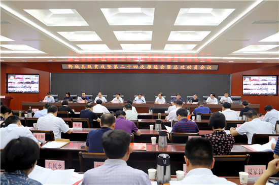 會議以電視電話會議的形式召開,副處級以上領導干部,縣委各部委分管副職,縣直各單位主要負責同志,各鄉鎮、辦事處黨委書記,縣脫貧攻堅督查巡查組,以及扶貧辦副科級以上干部在主會場參加會議;各鄉鎮副科級以上干部,行政村支部書記,駐村第一書記,鄉鎮扶貧辦全體人員在各鄉鎮設分會場聆聽會議。(③2)