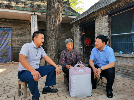 上午9時許,張永政一行攜帶大米、礦泉水、紙抽、蠶絲被等慰問品來到王國輝家,對王國輝獲得榮譽表示祝賀,并與王國輝的母親切交談。張永政向王國輝母子傳達了省信用聯社黨委書記王勇的親切慰問。張永政說:“前不久,省信用聯社黨委書記王勇來周口調研時,十分掛念王國輝的家庭和村集體生產經營情況,專門囑托他要向王國輝學習并前往慰問,要與田營村搞好金融對接,開啟黨建聯盟,全力做好金融后盾。”