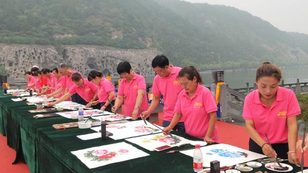 受郭泰森影響,村里不少農民也想學習畫牡丹,在當地政府的支持和幫助下,郭泰森舉辦了牡丹畫免費培訓班、畫師培訓班,參加培訓的學員場場爆滿。如今,平樂鎮牡丹畫師已發展到1000余名,形成了包括培訓創作、裱畫包裝、推介營銷、研學旅行等相對完整的產業鏈,帶動相關從業人員5000余人。