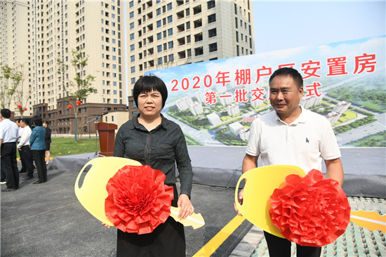 9月27日,2020年棚戶區安置房第一批交房,德和家園業主代表喜領鑰匙。記者 王映 攝 (③2)