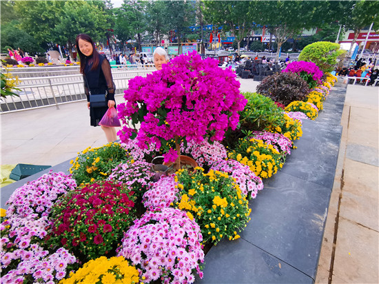 9月27日,在中心城區五一文化廣場,市民在鮮花盛開的花壇走過。“十一”臨近,五一文化廣場裝扮一新,各色花卉和造型樹木分布在廣場的各個方位的花壇內,吸引市民觀賞拍照。②9