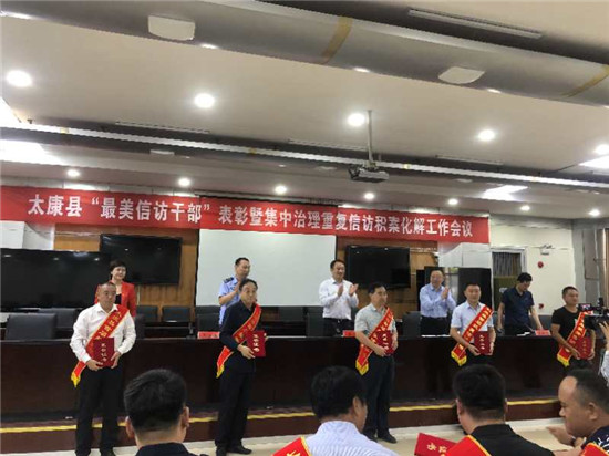 會上,縣公安局局長李根闖同志宣讀了《太康縣首屆“最美信訪干部”表彰決定》;參會領導為首屆“最美信訪干部”代表頒發了榮譽證書;遜母口鎮王登領、朱口鎮李道倉、大許寨鎮劉二振等三名同志代表全縣首屆“最美信訪干部”做了典型發言;縣委政法委常務副書記、信訪局黨組書記、局長趙春麗同志傳達了中央、省、市有關會議和批示精神,并通報全縣赴京越級訪情況。