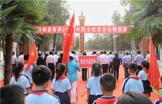 鄲城大地存浩氣,蒼松翠柏祭英烈。9月30日,鄲城縣在烈士陵園舉行2020年烈士紀念日公祭活動,市人大常委會副主任、鄲城縣委書記羅文閣,縣長李全林,縣人大常委會主任李建軍,縣政協(xié)主席王偉等縣四個班子領(lǐng)導(dǎo),全縣副處級以上領(lǐng)導(dǎo)干部,縣直各單位負責(zé)人,23個鄉(xiāng)鎮(zhèn)辦負責(zé)人,退役軍人代表、師生代表和社會各界人士,一同祭奠革命先烈,激勵全縣上下不忘初心、牢記使命,為鄲城縣高質(zhì)量發(fā)展而不懈奮斗。