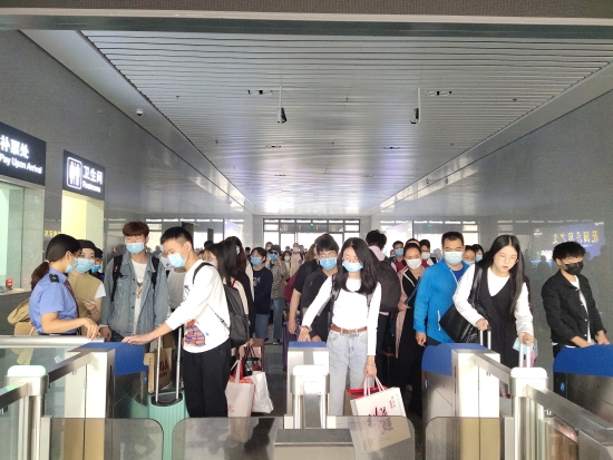 在客運組織上,該站進一步細化客運組織各項措施,在預售高峰時段加派實名制安檢人員補強人手,在不影響進站速度的同時嚴格落實安檢查危制度,做到逢包必檢、逢液必查,確保候車乘車秩序安全萬無一失。同時,該站也為距開車時間較近趕車的旅客開辟快速綠色進站通道,對他們優先查驗、優先安檢,最大化方便旅客進站候車。