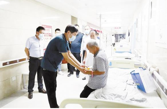 “雙節”當天,鄲城縣第二醫健集團縣中醫院院長水新華,副院長史昊、仵好金、崔冬一行分別到臨床、醫技等科室慰問節日值班人員和住院患者,轉達了鄲城縣衛健委黨組書記、主任付登霄對大家的節日祝福,并向“援鄂英雄”胡奔奔送去節日慰問,向住院患者送去月餅和祝福。記者 徐松 通訊員 張洋 攝