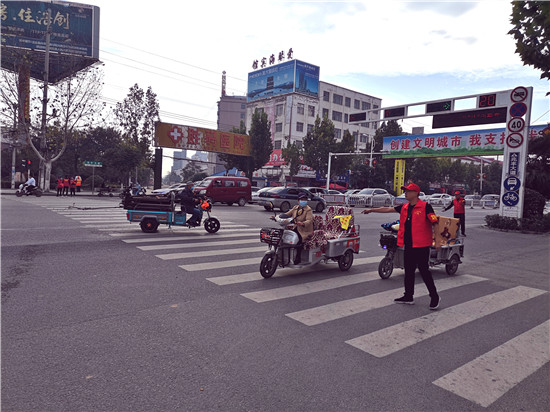 連日來,沈丘縣自然資源局積極組織黨員志愿者深入開展新時代文明實踐暨“文明交通勸導”志愿服務活動,助力省級文明衛生縣城創建。