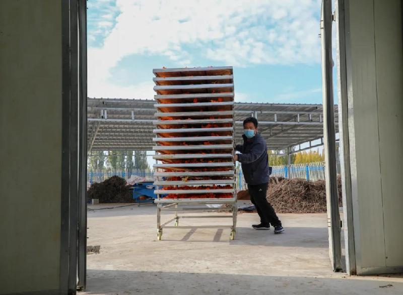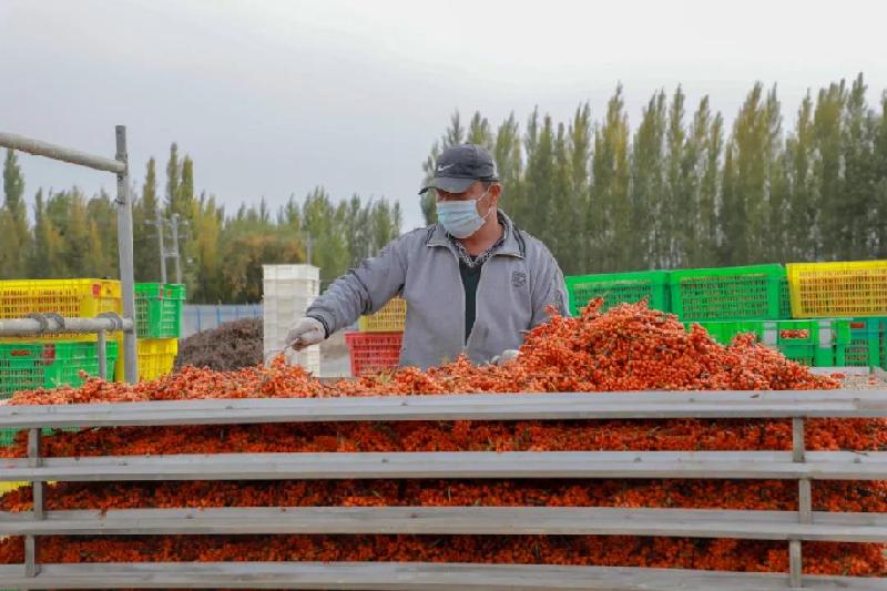 烘干廠房負責人李紅偉說:“之前烘干枸杞、沙棘等農作物,我們都是找人代加工,成本比較高。現在新的烘干廠房運營一個多月來,產值和產量都比較穩定。每間烘干房3天能烘干500公斤干果,我們廠房共有10間烘干房,一次就能加工5噸干果。”