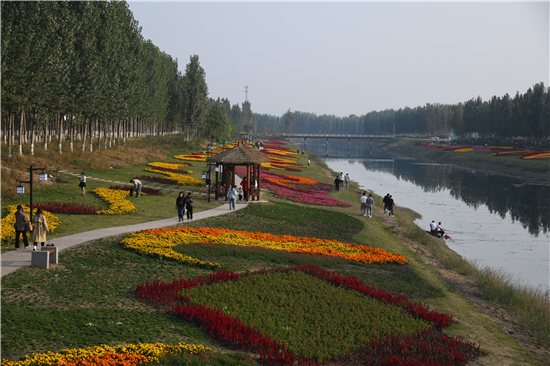 10月20日,市民在商水縣高標準農田灌溉渠兩岸游玩。