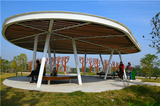 10月21日上午,市民在剛剛建成的商水森林公園(一期)游玩。