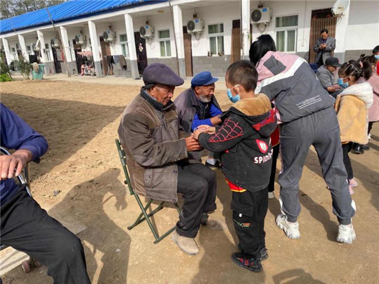 10月23日上午,西華縣東夏亭鎮敬老院內熱鬧非凡,一群幼兒園的小朋友在熱情地為老人服務。