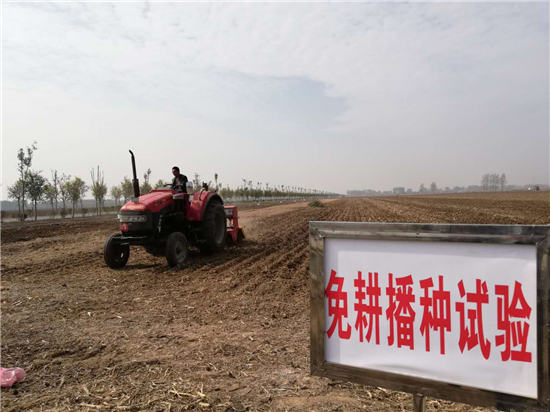 為實現藏糧于地、藏糧于技,商水縣聯合國家、省有關科研院校,成立農業機械化耕種實驗基地,探索農業發展新科技。農技人員劉天華表示,免耕播種就是不用耕地直接播種小麥,這項技術試驗成功后,將大大節省小麥耕種時間,為搶農時、搶墑情創造條件,對保障糧食安全有重要意義。