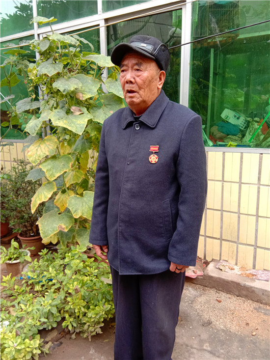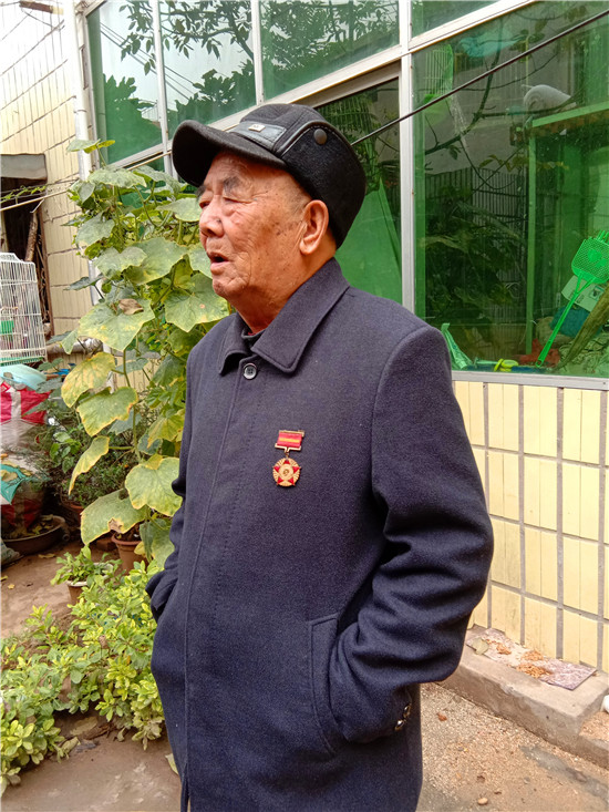 快到王景文家時,記者與他取得了聯系,沒想到他竟到路口來迎記者,看到他硬朗的身板和健康的身體,聽他說話聲音洪亮、底氣十足,記者還是很欣慰的,畢竟經歷了70年的風雨洗禮,還能行走自如、聲如洪鐘,的確是寶刀不老。被他迎進家,其老伴滿頭銀發,喜瞇瞇地讓記者進屋,王老先生去里屋找出了一枚抗美援朝紀念章,并說抗美援朝和平紀念章等物品都放丟了,找不到了,有些遺憾。記者就開門見山地說要聽他講講參加抗美援朝的故事,他不好意思地笑了:“講不好,年齡大了,記性不好,有好多事都記不清了……”當問起他老家是哪里時,王老先生還是打開了話匣子。1934年,他出生在淮陽縣劉振屯鄉耿樓大隊李樓村,由于家境貧寒,他從小就跟隨家人一路逃荒要飯來到了扶溝,但日子還是艱難,為了能活命,父母無奈把他送給了扶溝縣城一戶人家,從此他就成了這戶人家的孩子,并于1951年5月結婚??山Y婚沒幾個月,縣里就開始征兵了。當兵離家,要丟下妻子,更何況妻子已有孕在身,他真舍不得;保家衛國,是義務是責任是擔當,他責無旁貸。家與國,他毅然選擇去當兵。與新婚燕爾的妻子依依惜別,他踏上了行軍的征程。那時可沒有車接送,去往目的地,全靠兩條腿,行軍與訓練的苦與累難以想象。問他不害怕當兵打仗嗎?他回答:“不怕!”語氣堅定而有力。生活的磨難讓他對安穩的生活有一種渴望,他明白戰爭會讓國家陷入混亂不堪的局面,老百姓的生活會更加艱難,為了祖國的和平安寧和兄弟姐妹的幸福,他愿意去當兵打仗。保家衛國的種子早已種在了他的心里。