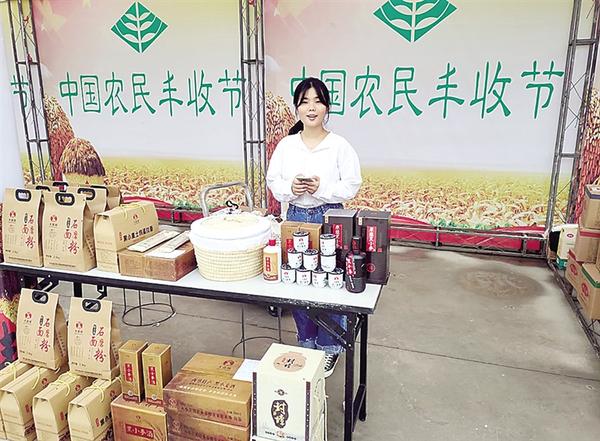 喜俊喜家庭農場生產的黑小麥系列產品參展西華縣農民豐收節。