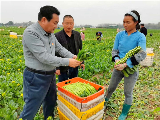 在張集鎮景鴻蔬菜種植基地,王國璽與正在干活的群眾親切交談,進菜地、看長勢、問產量,詳細了解產業規劃建設、政策落實、發展規模、運營模式、產品銷路、帶貧成效等具體做法和經驗。王國璽指出,在疫情防控常態化下,鄉賢有效利用資本市場,與家鄉勞動力資源、土地資源有效銜接,發揮產品優勢,增加群眾收入,鞏固了脫貧成果,為鄉村振興打下了堅實基礎,要做好宣傳推廣和經驗總結。