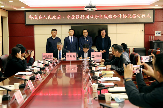 11月10日上午,中原銀行周口分行與鄲城縣人民政府戰略合作協議簽訂儀式在鄲城縣人民政府會議室舉行。