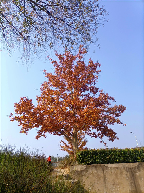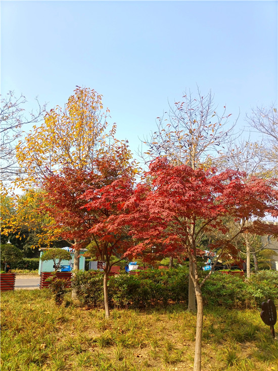 11月13日,初冬時節,天氣晴好,周口公園景色惹人醉,不同植被換上紅、黃、綠等各色靚裝,呈現出一派五彩繽紛的絢麗景象,別具韻味,吸引市民前來欣賞、游玩。記者 宋海轉 攝②9