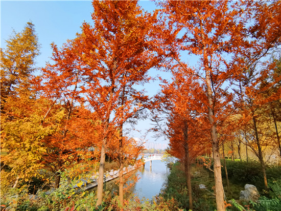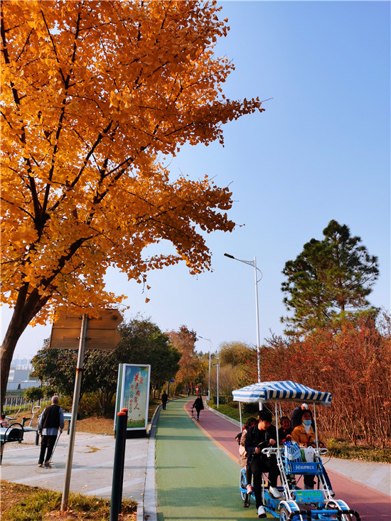 11月14日,陽光明媚,深秋的周口公園內五彩斑斕,游人如織。