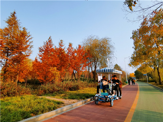 金黃色的杏葉、艷紅的楓葉、各色的鮮花……現在,市民們不用外出旅行,在家門口就可欣賞到這些美景。大家在周末時攜家在公園游玩、拍照很是愜意。
