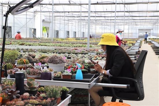 “雙11”剛過,河南“多肉之王”、省電商扶貧帶頭人張國健正帶領(lǐng)著團(tuán)隊(duì)在鄲城縣農(nóng)高區(qū)多肉基地為2300多單精準(zhǔn)發(fā)貨。今年38歲的張國健開過挖掘機(jī)、當(dāng)過銷售員,2014年在南方涉足電商時摔了大跟頭,賠了70多萬元?;氐嚼霞野遵R鎮(zhèn)辦了多肉種植基地之后,鄲城縣商務(wù)局等部門與其對接培訓(xùn)了網(wǎng)紅、推薦了人才、在農(nóng)高區(qū)設(shè)立2650平方米的大棚,張國健邁上了快車道,年銷售額在3000萬元以上。今年又增加9個大棚,包括錢店鎮(zhèn)、石槽鎮(zhèn)兩個供貨代養(yǎng)的扶貧大棚,幫扶30多戶貧困戶脫貧,帶動電商從業(yè)人員160余人。
