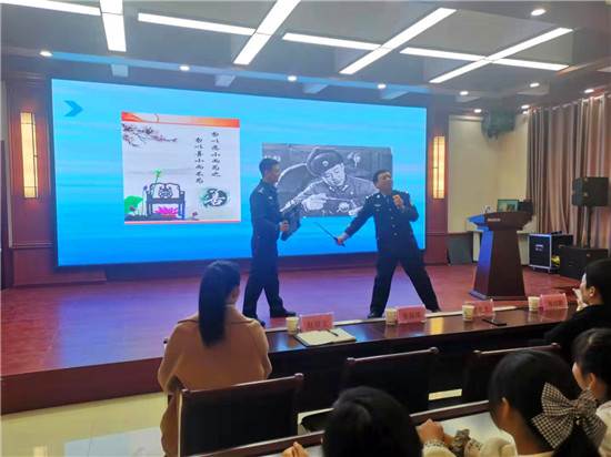 課堂上, 公安民警用鮮活的案例剖析青少年違法犯罪的心理軌跡,讓同學們做遵紀守法好學生。民警們解讀了社會主義核心價值觀基本內涵和具體要求,教育同學們要愛黨愛國愛校園愛學習,做人誠信,做事友善。民警們還教會學生們如何識別毒品,認識毒品危害,做到拒絕、遠離毒品,爭當禁毒小小宣傳員。對如何防范被刀棍傷害,民警們演示了書包板凳防護法。③5